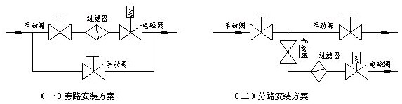 17.為便于正常維護(hù)或預(yù)防電磁閥發(fā)生故障時維修更換,并保證系統(tǒng)正常運行,建議采取以下其中之一備用管路方案: